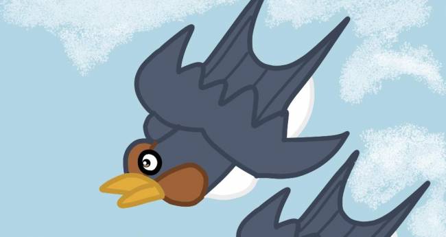 燕の夫婦が空高く、飛行している所を描きました。自信作です。