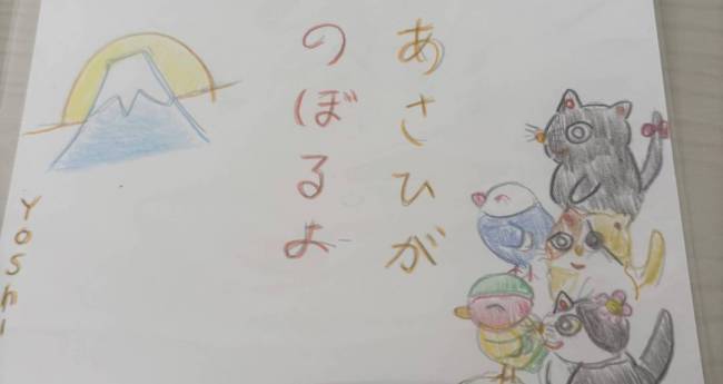 お正月にランちゃんとチェリーとミューちゃんとマサムネは初日の出に行き1年の幸せを願いました。