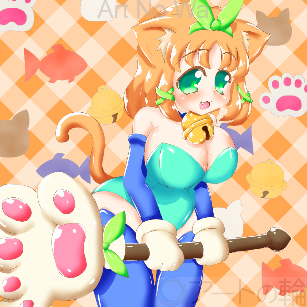 肉球型のステッキを持っている猫耳少女です。