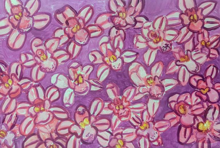 小学3年生の頃学校の先生が読書感想画のコンクールをすすめて参加したら入賞したきっかけで母のすすめもあり絵を描くのが好きになりました。特に花が好きで紙に大好きな花…