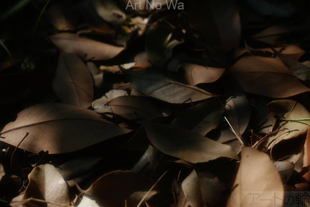 陰に木漏れ日が差した葉っぱは、ヒカリが一瞬のもので同じ写真は二度と撮れない。枯れ葉の美しさを引き出してくれる美しさが好きです。
