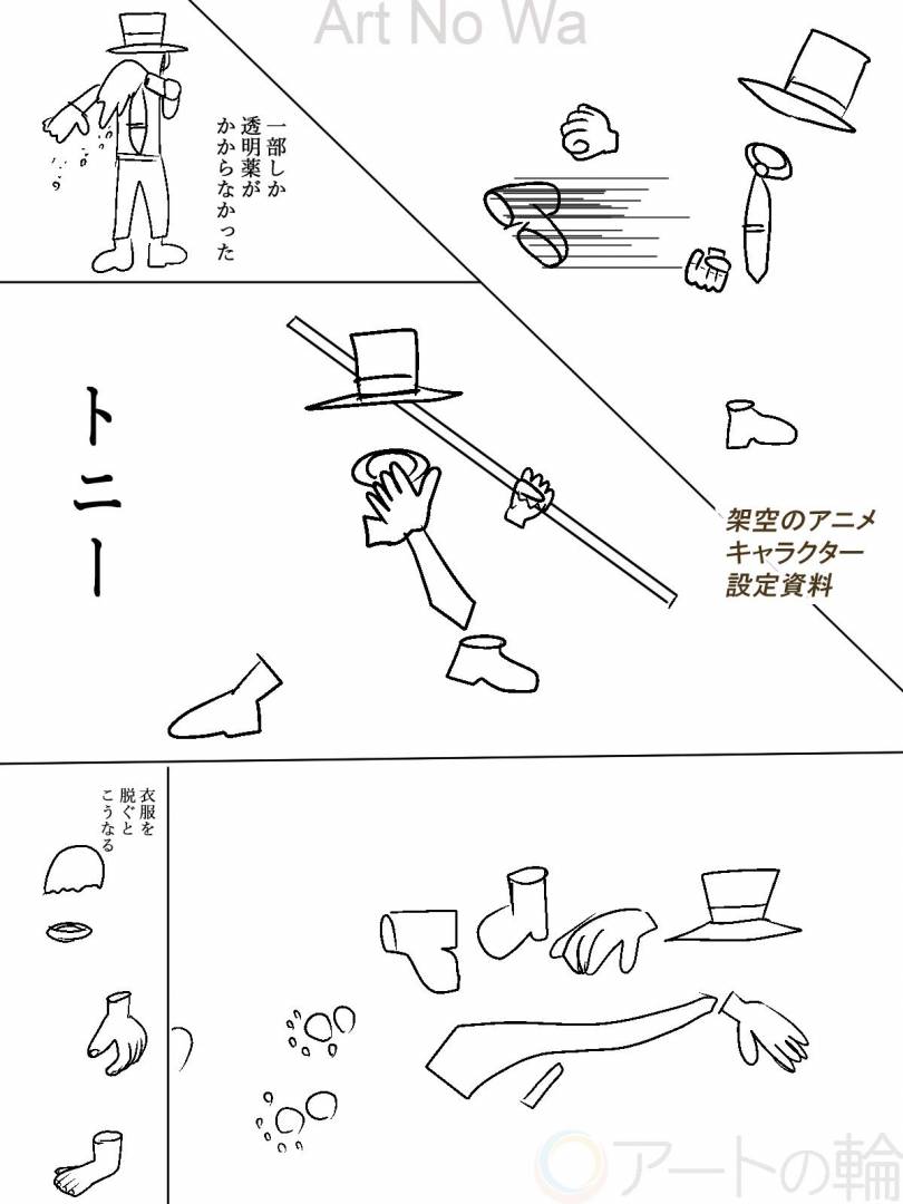 架空のアニメの元格闘家透明トニーの設定を描きました