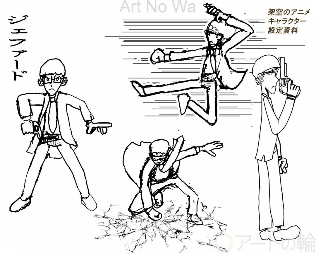 架空のアニメの設定資料 探偵、ジェファードを描きました