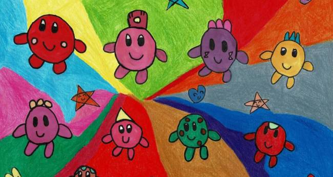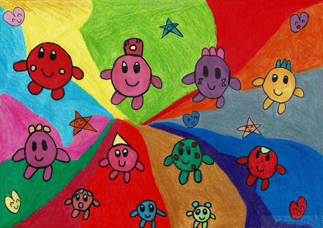みんなが笑顔になれるようなイラストを描きました。色を濃く塗るために力をいれました。