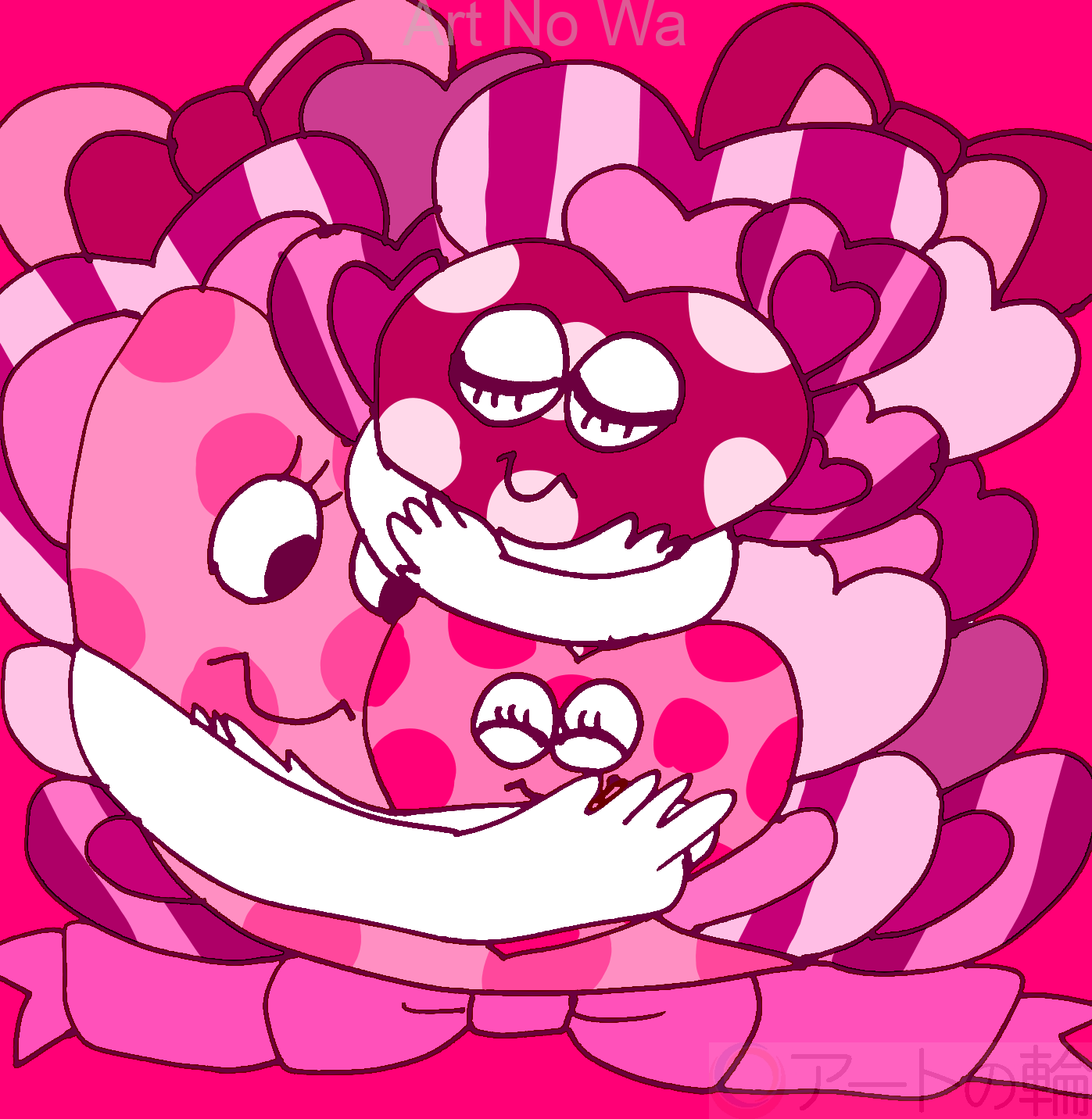大きな愛で抱きしめて絆を深めているハートの家族を描いてみました。