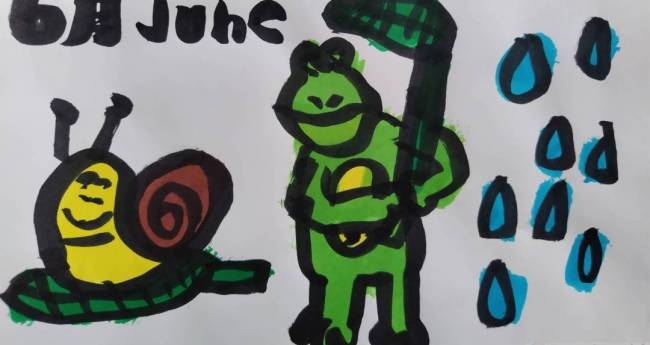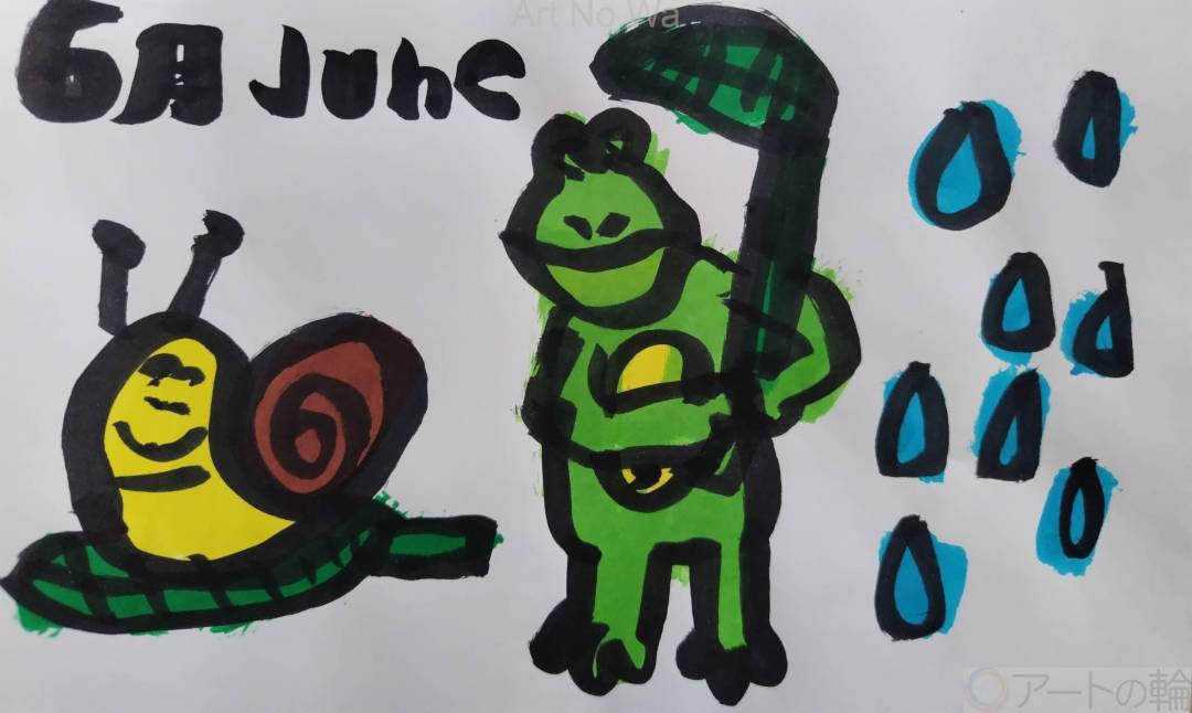 現実,非現実,屋外,自然,過去,現在,未来,6月,黄色,緑,水色,青,黒,動物,昆虫,明るい,たのしい,かわいい,わくわく,どきどき,2D