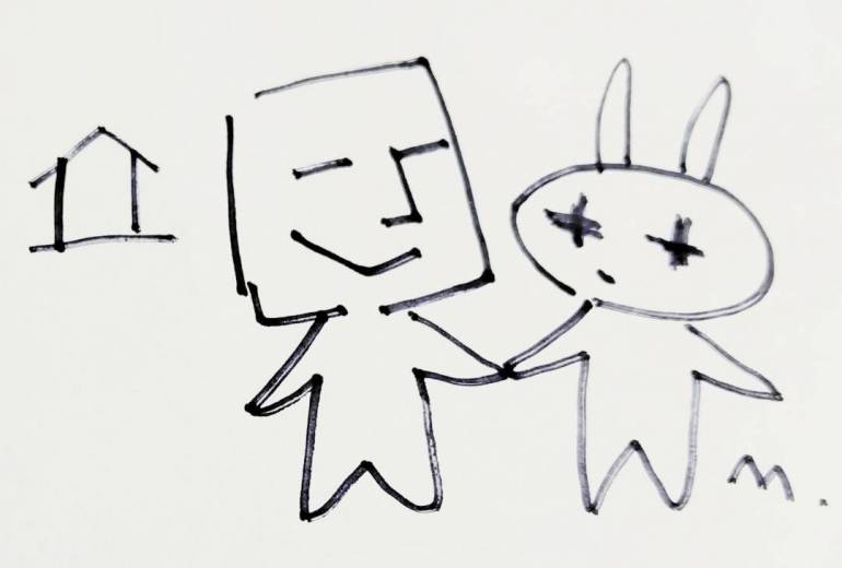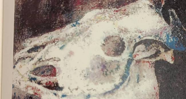 牛頭骨。高校の時の授業で書きました。小学3年の時に、画家さんのところで習ってたので、その画家さんは、教えると言うか 背中を見せる という感じでした。それで体が覚えて、油絵が描けるようになりました。丁寧な塗り重ねの油絵です。 だけど、高校のコンテストで、最優秀賞をもらう、石膏像父親像も、誰かがやった真似だと思って、作家さんの真似だと思って 自分だけのものが欲しいと思いました。 全ての模倣品を、その高校時代から捨てて、そしたら スランプになってしまって、 だから、ポポリが、生まれました。 本当にオリジナリティです。