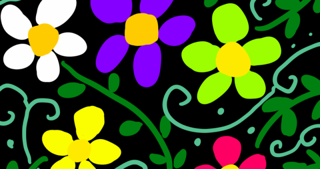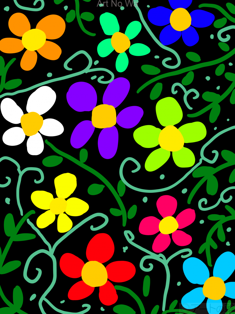 彩りよく自分らしく咲いている色んな色の花を描いてみました。