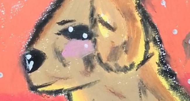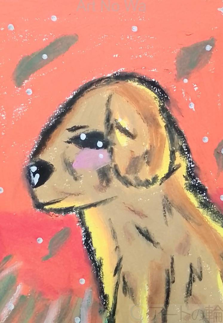 夕暮れの空を哀愁漂う表情で見ている犬を描いてみました。