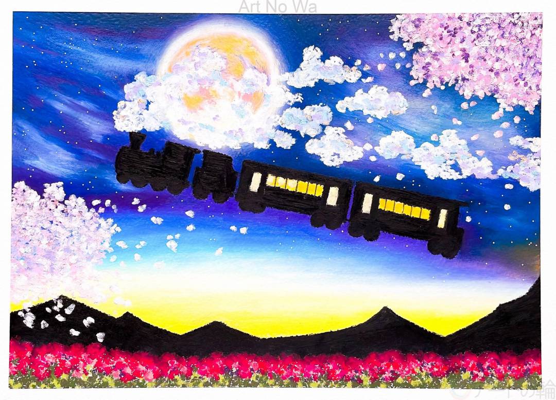 非現実,屋外,自然,空,のりもの,未来,春,赤,黄色,青,白,黒,風景,明るい,たのしい,わくわく,どきどき