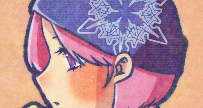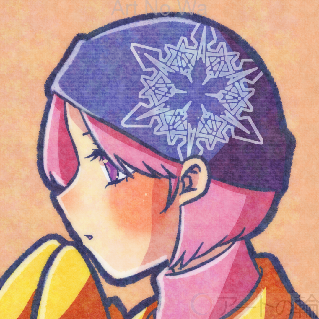 冬なので、雪の結晶が特徴的なニット帽をかぶっている女の子を描きました。寒々しくないように色味はあたたかくしました。