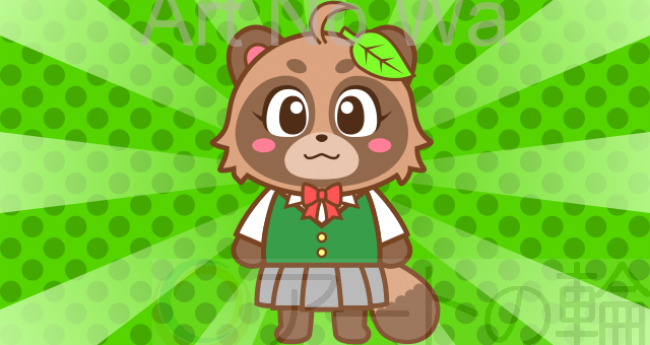 ぽんなちゃんはタヌキの女の子。 食いしん坊でいつもお腹ぺこぺこ。葉っぱ一枚さえあれば何にでも化けられる能力がある。 好物はきつねうどん。