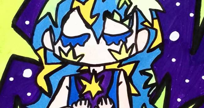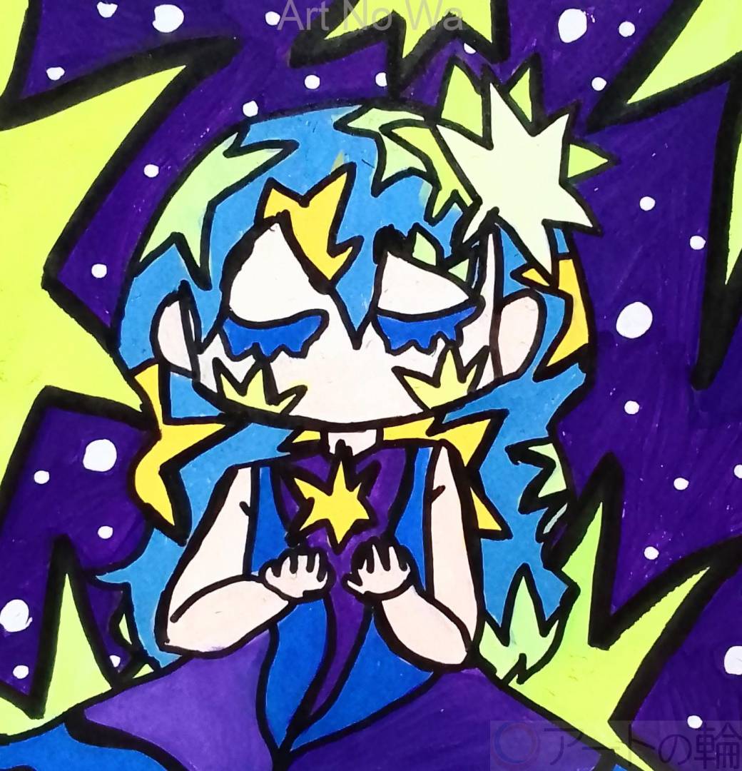 星のような輝きに思いを込めている女性を描いてみました。