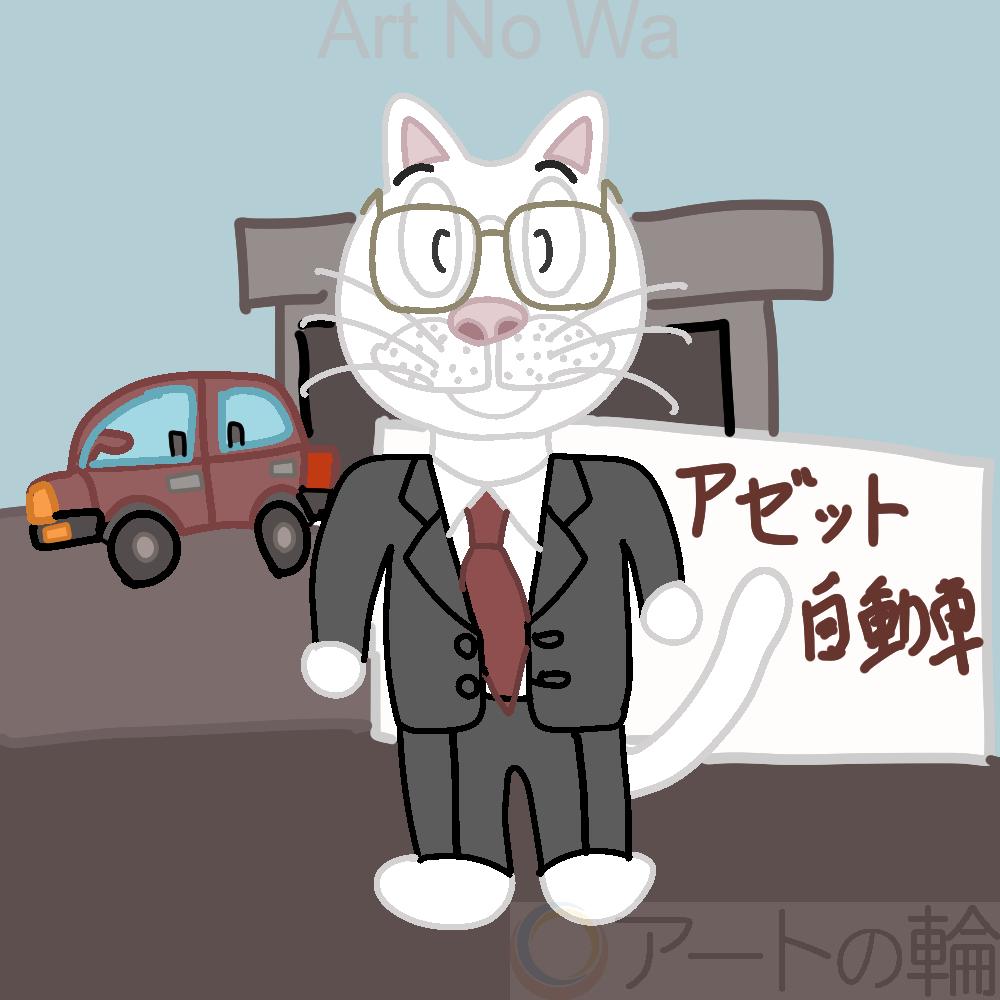 猫の社長の自動車屋さんを描きました。オリジナル作品です。