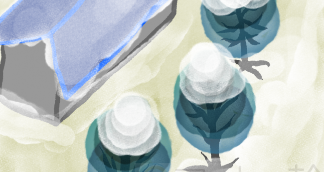 現実,非現実,屋外,自然,現在,冬,2月,緑,青,白,植物,風景,建造物,暗い,びっくり