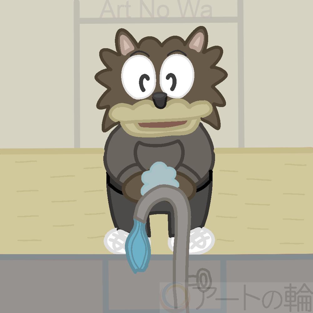 手を洗っている動物を描きました。芸術作品です。
