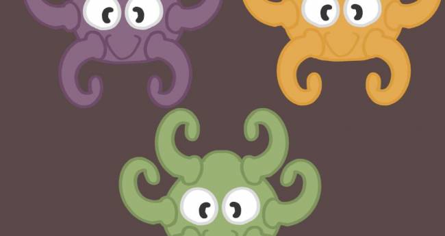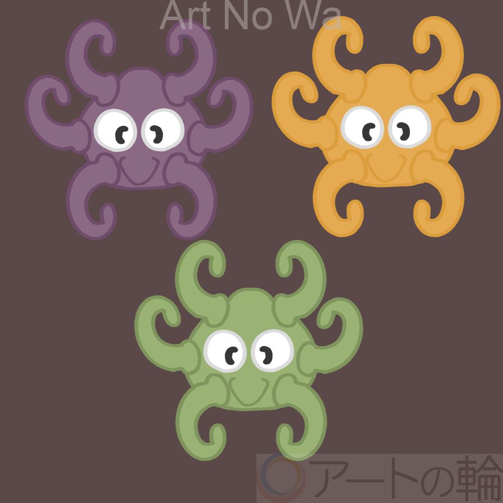 非現実,黄色,緑,紫,白,黒,想像上の生き物,明るい,たのしい,かわいい,わくわく