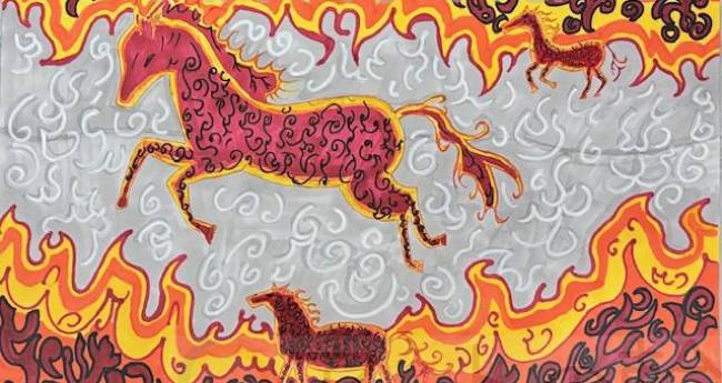 非現実,屋外,自然,2月,赤,オレンジ,黄色,動物,想像上の生き物,明るい,たのしい,わくわく,どきどき,びっくり