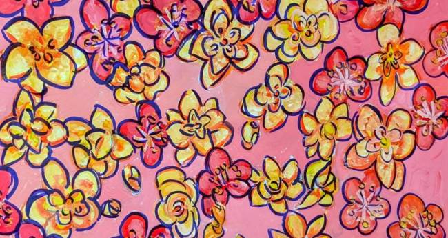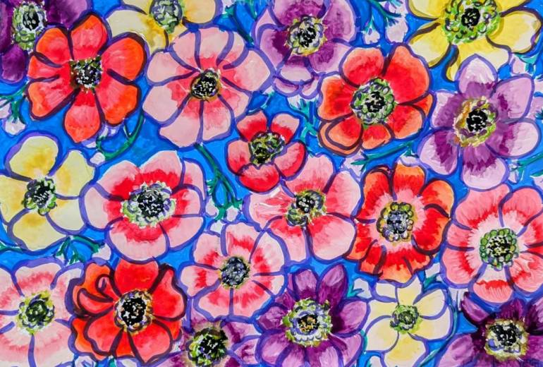 小学3年生の頃学校の先生が読書感想画のコンクールをすすめて参加したら入賞したきっかけで母のすすめもあり絵を描くのが好きになりました。特に花が好きで紙に大好きな花…