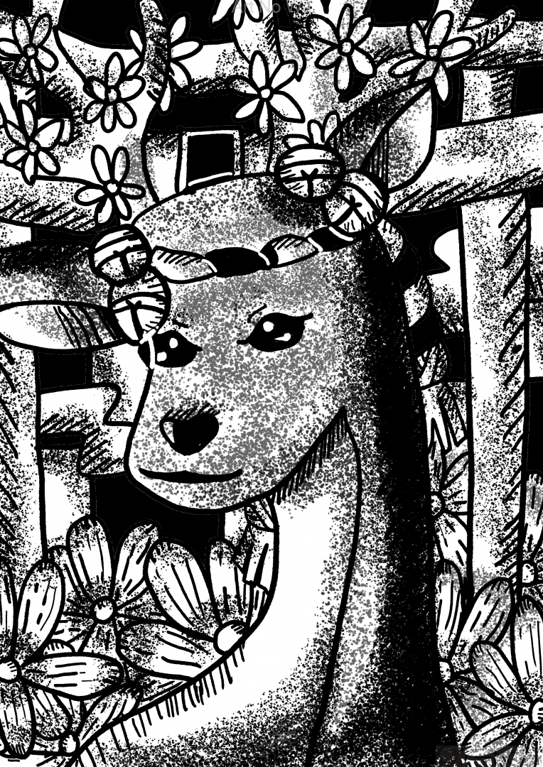 点描画風に鳥居の世界に迷い込んでいるシカを描いてみました。