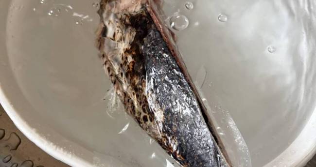 大型サイズカツオのタタキ捌きます流水解凍してます