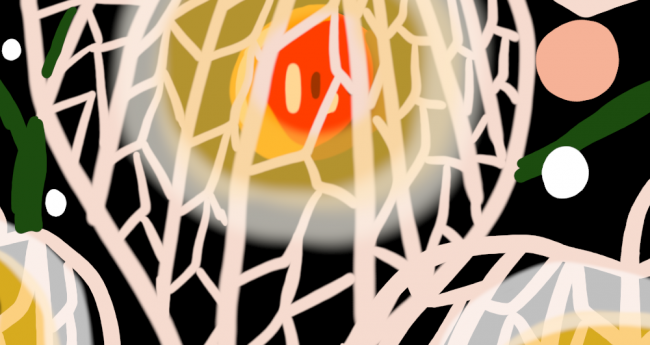 命を鬼灯の実に例えてどんな暗い暗闇の中でもキラキラと暖かく輝いている感じにしてみました。