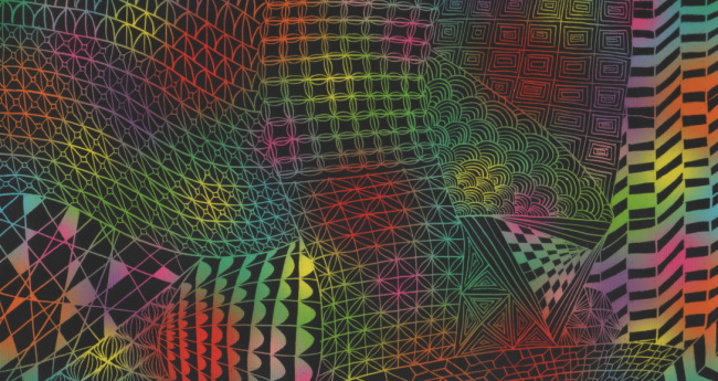 スクラッチアートで様々な模様を組み合わせパターンアートを表現しております。