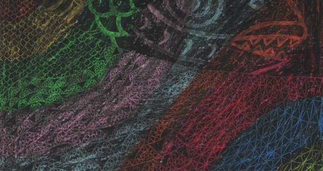 クレヨンで色を塗り、その上をスクラッチで削った作品です。