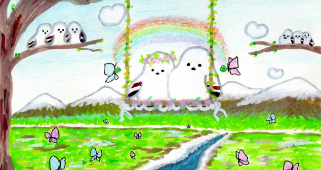 春が始まり、シマエナガの結婚式を想像して描きました。
