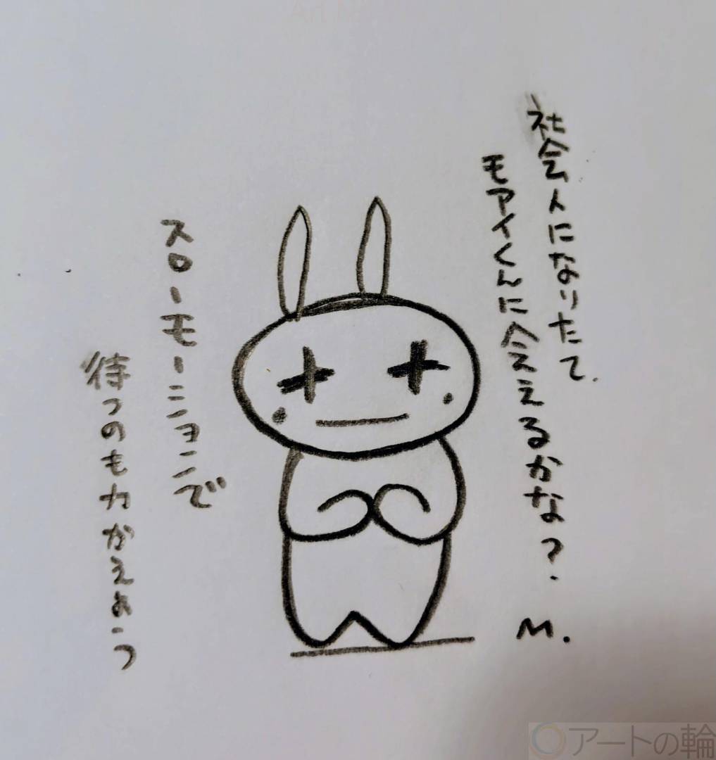モアイ 君と会えない日が続いた時、モアイ君は、仕事の関係で、海外へ旅に出ました。また会える日が分かりません。そんなときは、寂しくて会える日がわからなくて、不安でしょうがなかったです。でも、スローモーションで待つことにしました。会えると信じて。いつまでも待つことにしました。