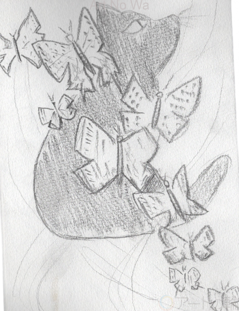 猫の日ということで、黒猫と蝶々を鉛筆で描きました!