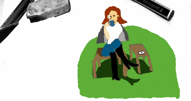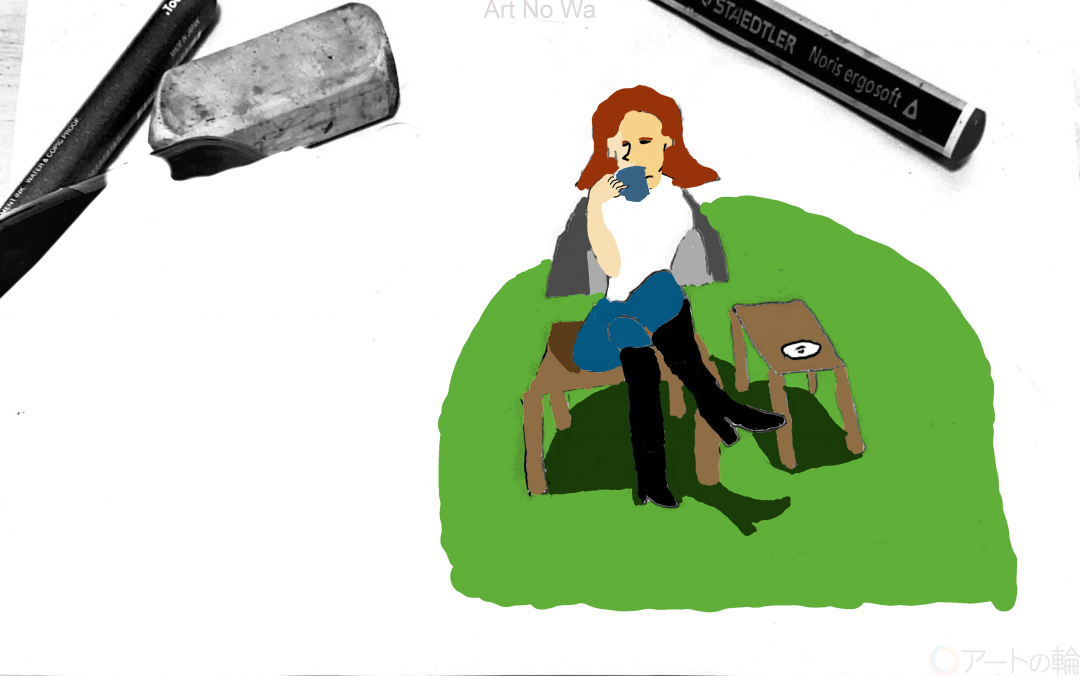 キャンパスの中でキャラクターが生き生きとしているところを描きました。