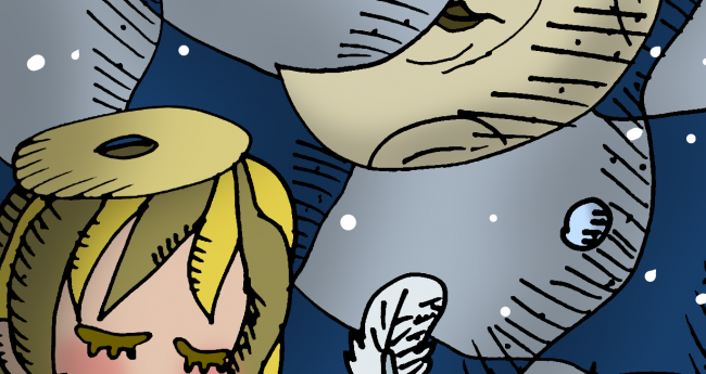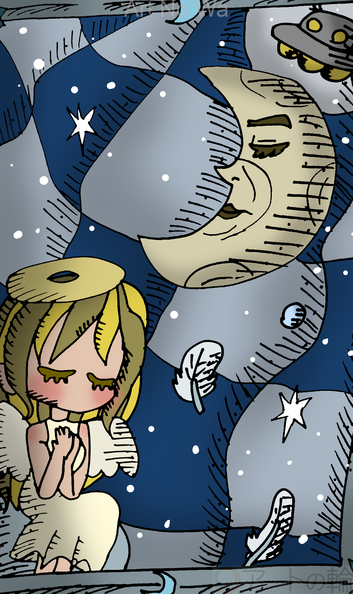 月に願い事をしている天使の少女を描いてみました。