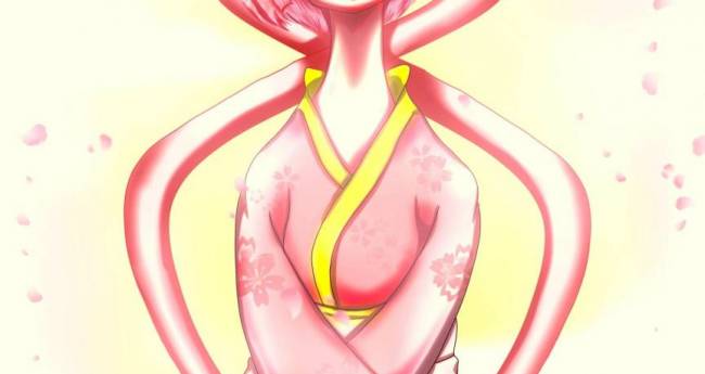 桜模様の着物の猫又を描きました。
