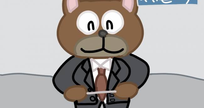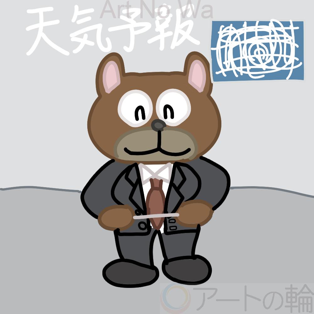 熊さんがテレビに出て、天気予報をしている所を描きました。オリジナル作品です。