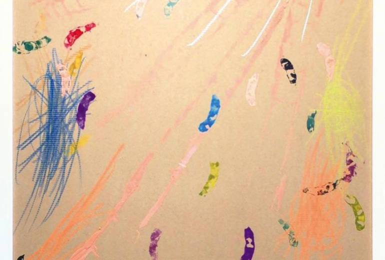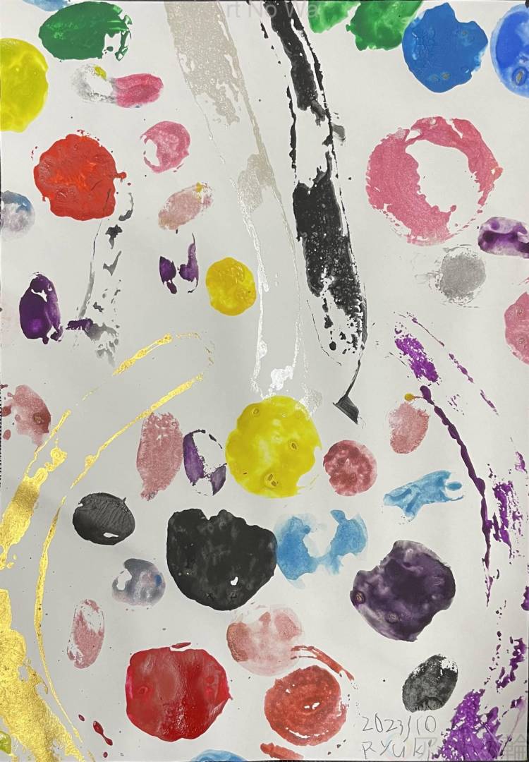 野菜スタンプアートを続けて数年、モチーフがみえ始めた記念の1作です。日本画の様な、違うテイストを見せつけるところが龍生らしいです