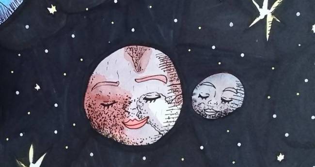 どんなことがあっても冥王星の側で支えている衛星のカロンを描いてみました。