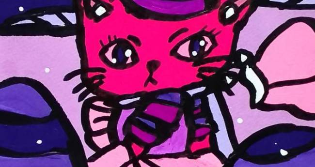 蝶々に懐かれているキノコの国の猫のお姫様を描いてみました。