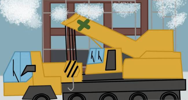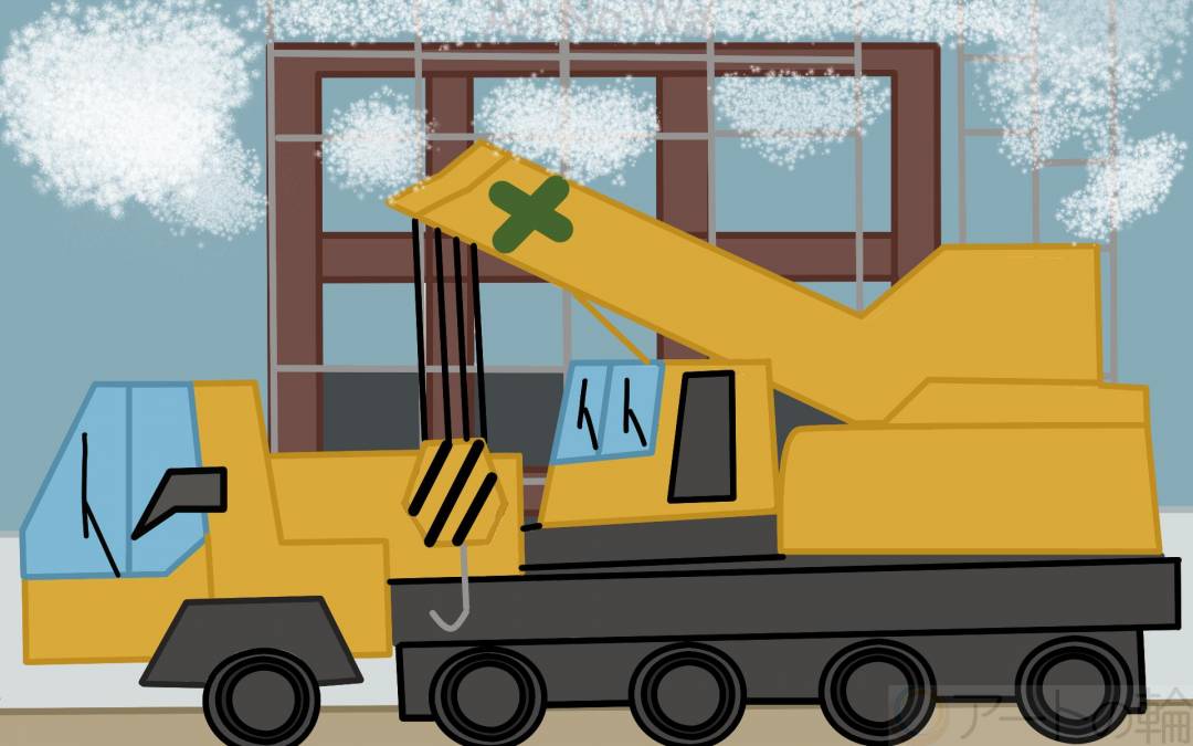 クレーン車が工事現場で、準備をしている所を描きました。芸術作品です。