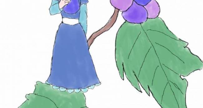 ぶどう果汁100%のジュースの妖精をイメージして描きました。
