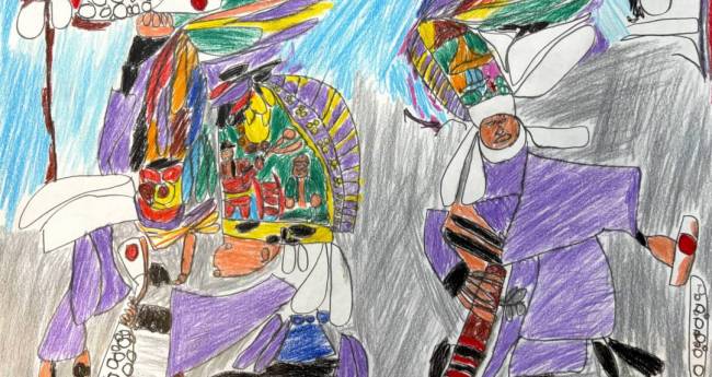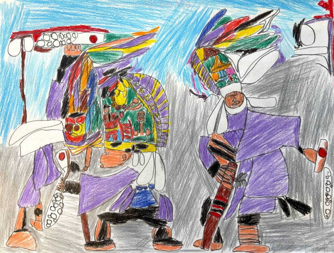 えんぶりは3人が踊っている作品です。アートの作品でキレイな絵です。ともみえんぶりはやっぱりアート作品でした。