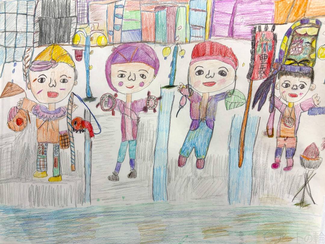 えぼしがポイントです。かがり火がもえるイメージです。にぎやかなまちになりました。