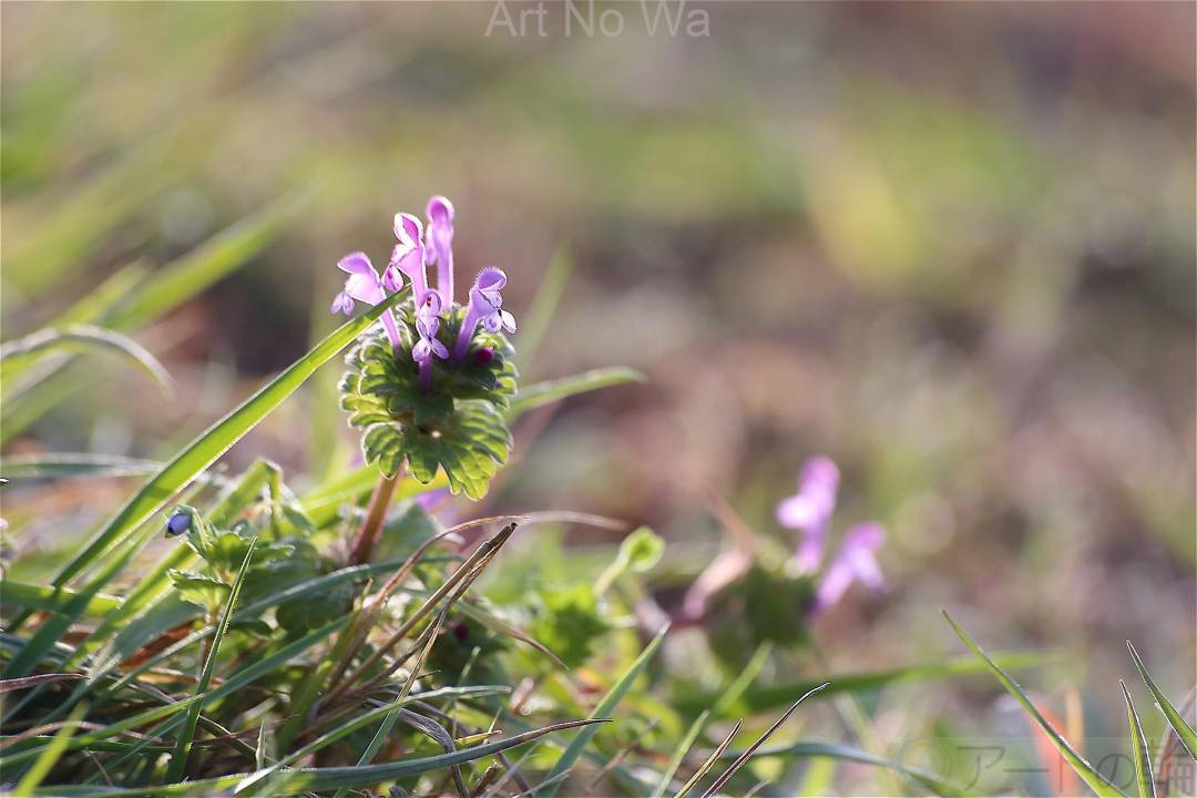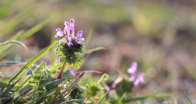 草むらから顔を出したホトケノザです