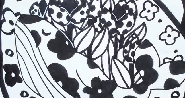 チューリップの花言葉をもとに描いてみました。クジラが何か叫んでいそうですね。