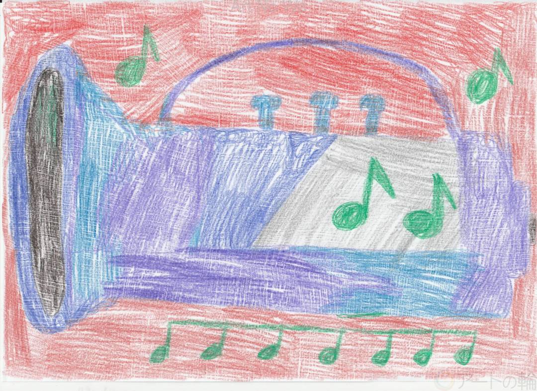 大砲とトランペットをコラボさせたイメージで描きました