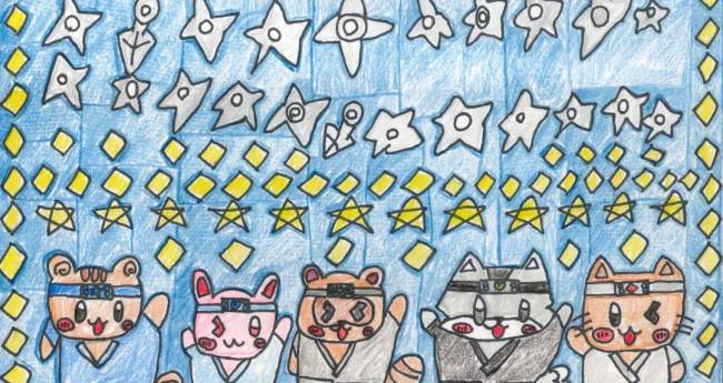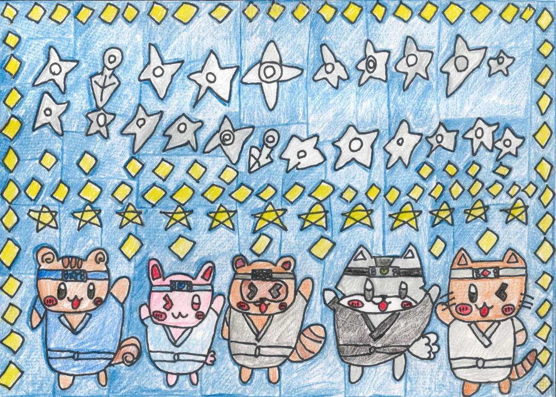 動物たちが忍者ごっこをしているところをかっこよく描いてみました。