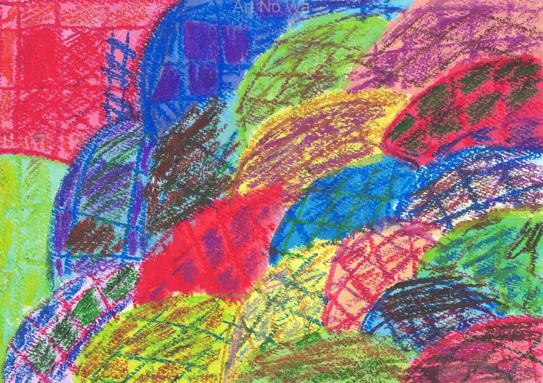 ふうせん 私は、ふうせんの上に乗って遠くに行きたいと思いました。この絵は、イメージとして山やせんすに 見えたりします。