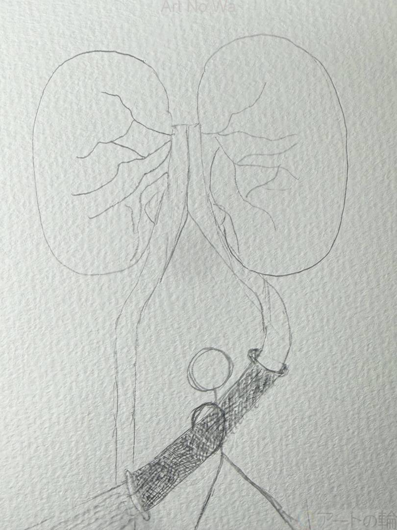 腎臓の膀胱につながる管が放水ホースになったイメージ。