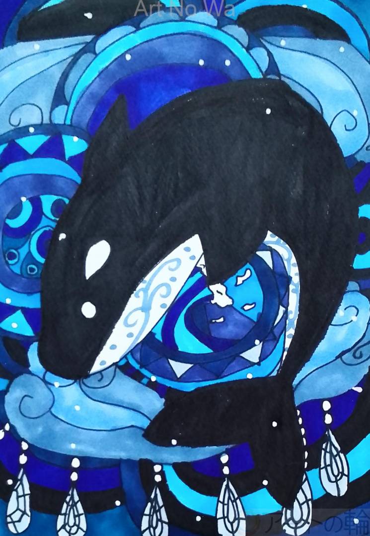 華麗に水しぶきをあげてジャンプしているシャチを描いてみました。