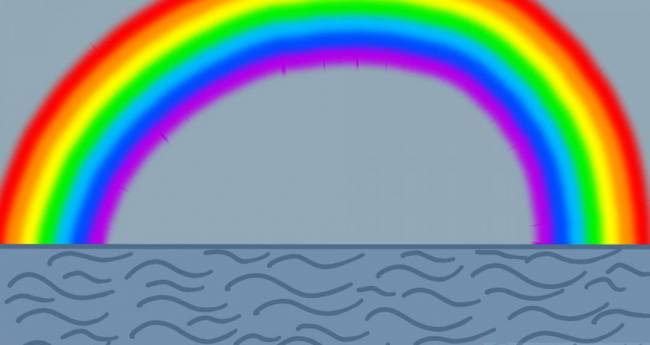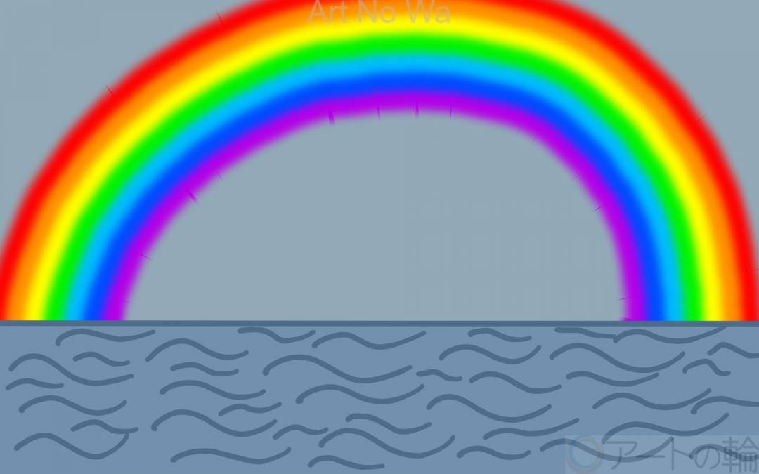 雨上がりの海に虹を描きました。オリジナル作品です。